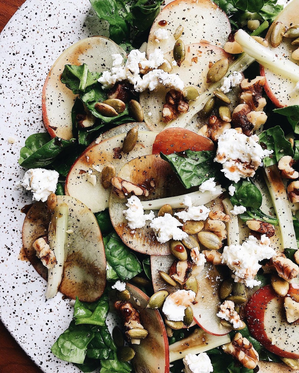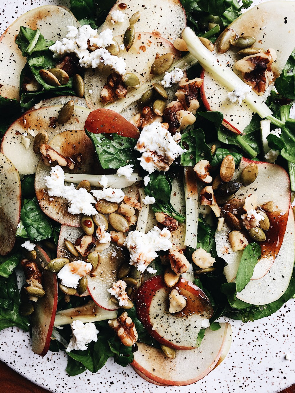 1. Combine your greens with apple slices, fennel strips, pumpkin seeds and walnuts.